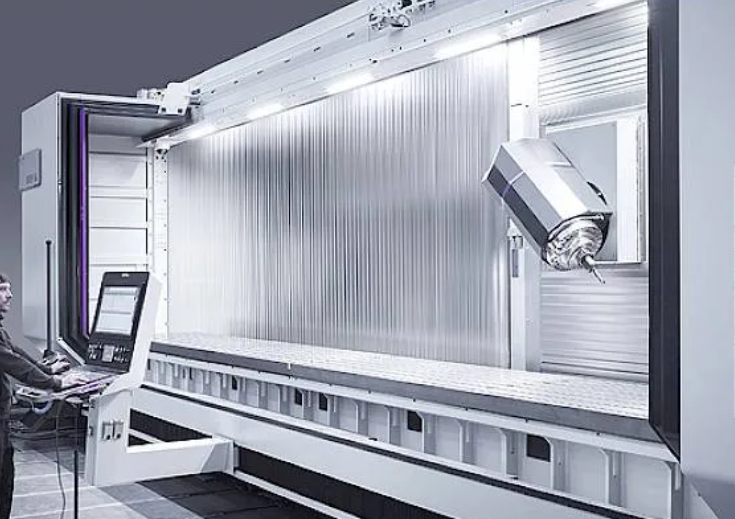 为确保7000mm全行程精度一致性,设备配备HEIDENHAIN全轴绝对光栅尺、BLUM激光对刀仪、刀具识别系统与工件测头。