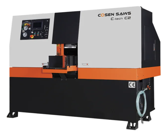 2、使用5HP马达、特殊设计减速机、34mm宽锯带、防震滚轮、锯臂与虎钳同步、第一刀头料等功能,造就台湾高圣全罩式油压进给自动化数控带锯床C-Tech C2精准、快速、大量切削优势。