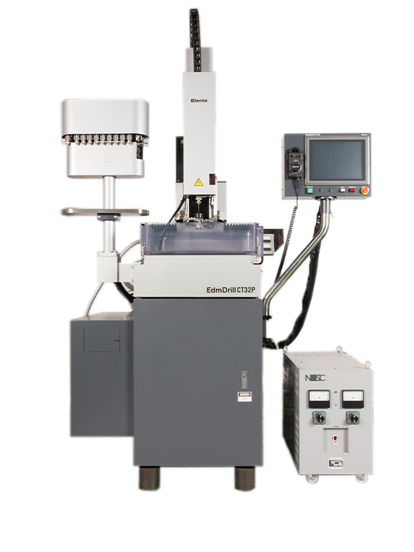 日本elenix艾镭尼克斯微孔放电加工机床CT32P,高速加工Φ0.03mm以上的孔,节距精度高。通过选配电极交换系统, 即使对于Φ0.03,更换电极也只需不到2分钟即可完成。